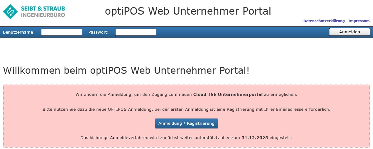 Sie müssen sich einmal neu mit Ihrer E-Mailadresse registrieren um ein optiPOS Konto anzulegen. In Zukunft verwenden Sie dann nur noch die Anmeldung über Ihr optiPOS Konto (das bisherige Anmeldeverfahren wird nicht mehr benötigt).